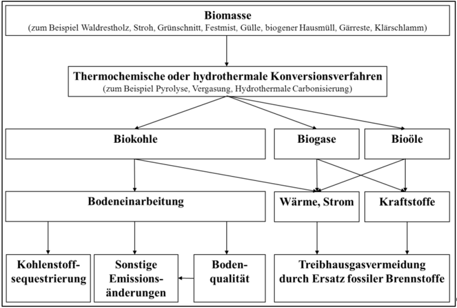 Abbildung: Wege der Treibhausgasreduktion durch Biokohle