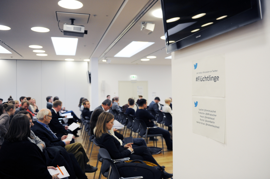 Armin Laschet, Landes- und Fraktionsvorsitzender der CDU Nordrhein-Westfalen und Stellvertretender Bundesvorsitzender der CDU Deutschlands, verwies zudem auf viele ungelöste Probleme, an der sowohl die Politik als auch die Unternehmen häufig scheiterten. Aus Unternehmerperspektive gäbe es große Unsicherheiten, sagte der einzige Politiker in der Runde: „Gerade mittelständische Unternehmer fürchten die Unsicherheit bei der Einstellung von Flüchtlingen. Es sei nicht absehbar, wie lange sie in Deutschland bleiben oder bleiben dürfen.“ Diesem Aspekt stimmte ein Vertreter der IHK Berlin zu, der aus dem Publikum an der Diskussion teilnahm. Denn mangelnde Sprachkenntnisse der Geflüchteten, fehlende Transparenz seitens der Behörden und Rechtsunsicherheit treibe viele Vertreterinnen und Vertreter der Industrie um.