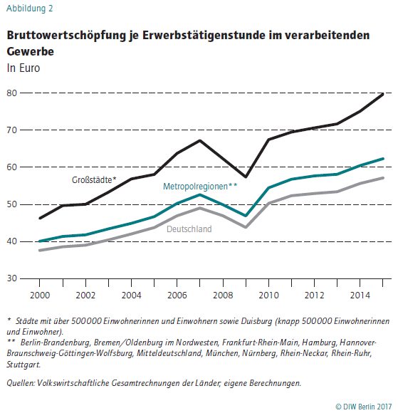 Großstädtische Industrie hat großen Produktivitätsvorsprung