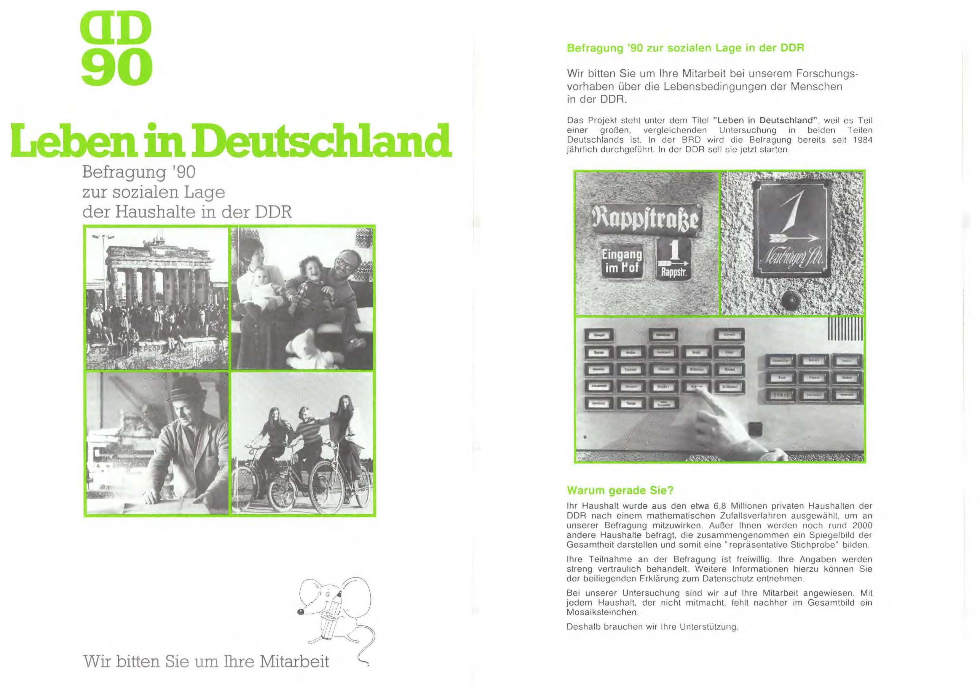 Im Juni 1990 führten dann die Interviewer*innen von TNS Infratest die erste Erhebung in Ostdeutschland durch. Sie befragten 2.179 Haushalte, in denen 4.453 persönlich befragte Erwachsene und 1.591 Kinder lebten.