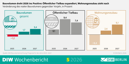 Bauvolumen dreht 2026 ins Positive: Öffentlicher Tiefbau expandiert, Wohnungsneubau zieht nach