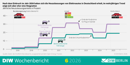 Nach dem Einbruch im Jahr 2024 haben sich die Neuzulassungen von Elektroautos in Deutschland erholt, im mehrjährigen Trend zeigt sich aber eher eine Stagnation