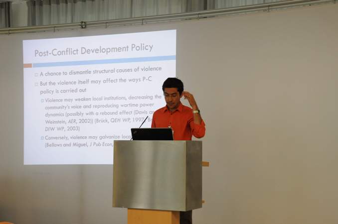 Furthermore, the meeting offered an opportunity for PhD students to present their theoretical models and preliminary findings and discuss their research with an audience of international scholars. At the end of the second day, Sebastian Schutte from the ETH Zürich received the Stuart A. Bremer Graduate Travel Award, which aims at enhancing the cooperation between young North American and European peace researchers.