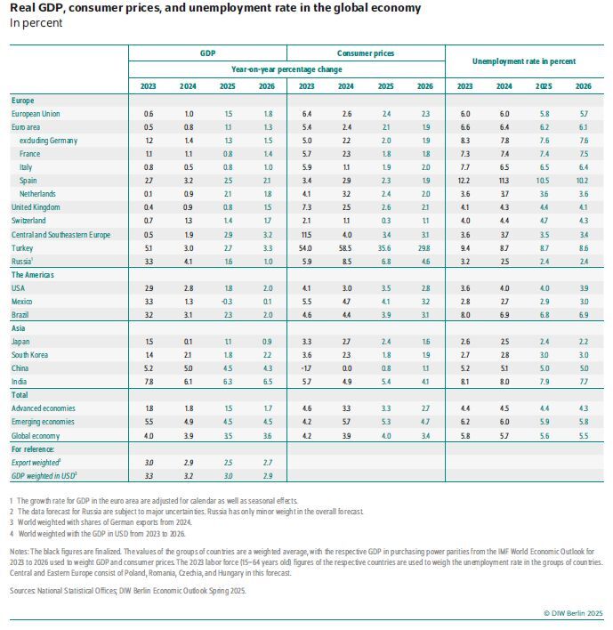 Germany is currently bringing up the rear among the major eurozone countries. Overall, the eurozone is likely to benefit from the customs asymmetries that still exist this year, as the EU is not yet as heavily affected by tariffs as China, Canada, and Mexico. Globally, however, the erratic trade policy of the US administration will leave a significant mark, particularly on world trade. Overall, despite rising trade barriers and uncertainty this year and next, the global economy is likely to grow at a rate not much lower than 3.9 percent in 2024. The fact that the rates are expected to be only 3.5 and 3.6 percent, respectively, is likely to be due primarily to a weaker US economy, which is suffering most from its own policies.